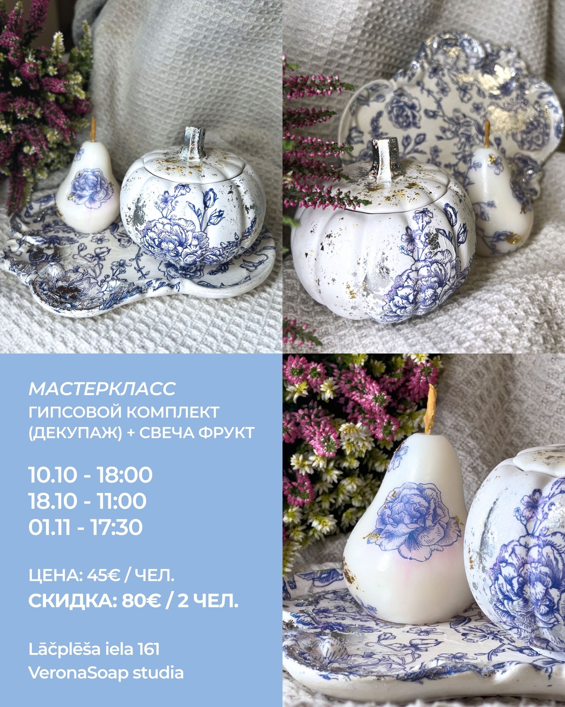 Šajā meistarklasē radīsim elegantu ģipša komplektu (trauks ar vāciņu, dekupāža) un aromātisku augļu sveci – unikālu interjera dekoru ar īpašu šarmu. ✨